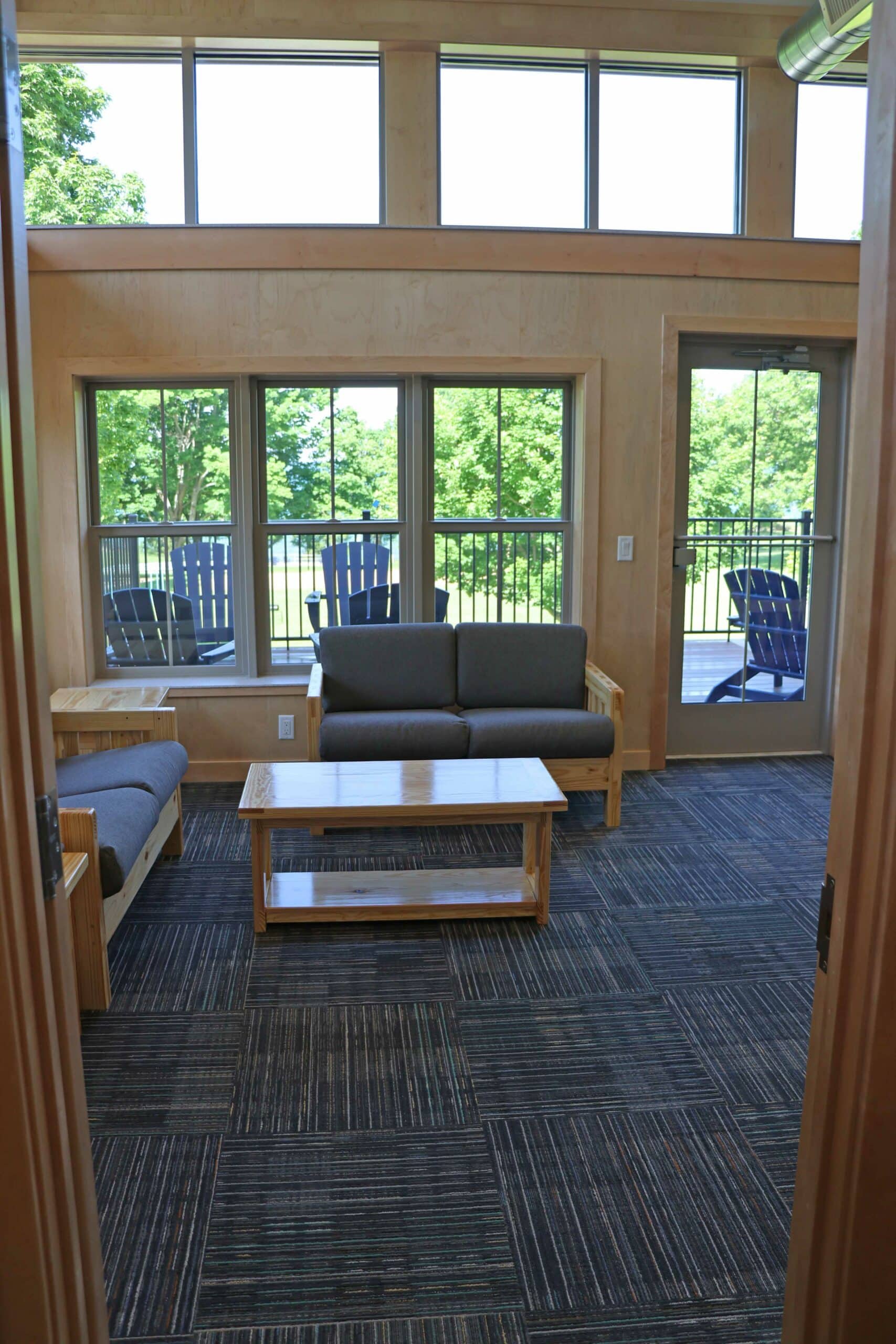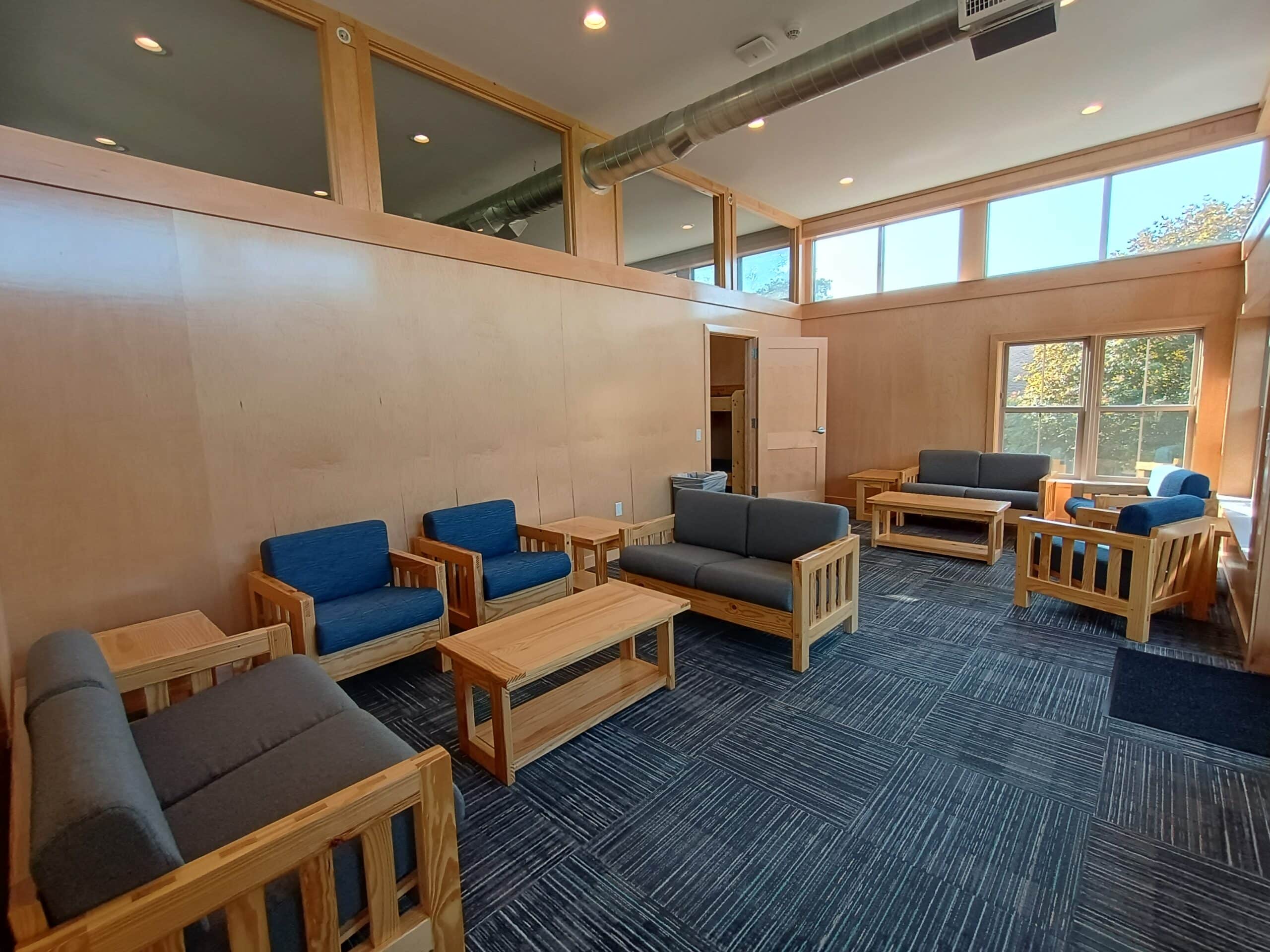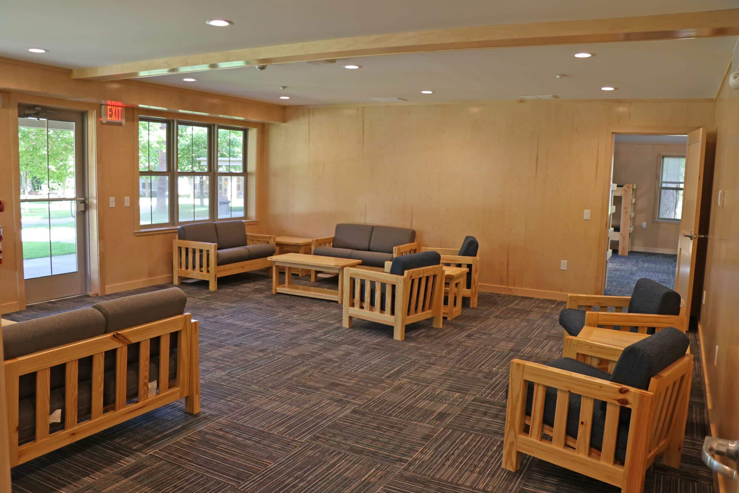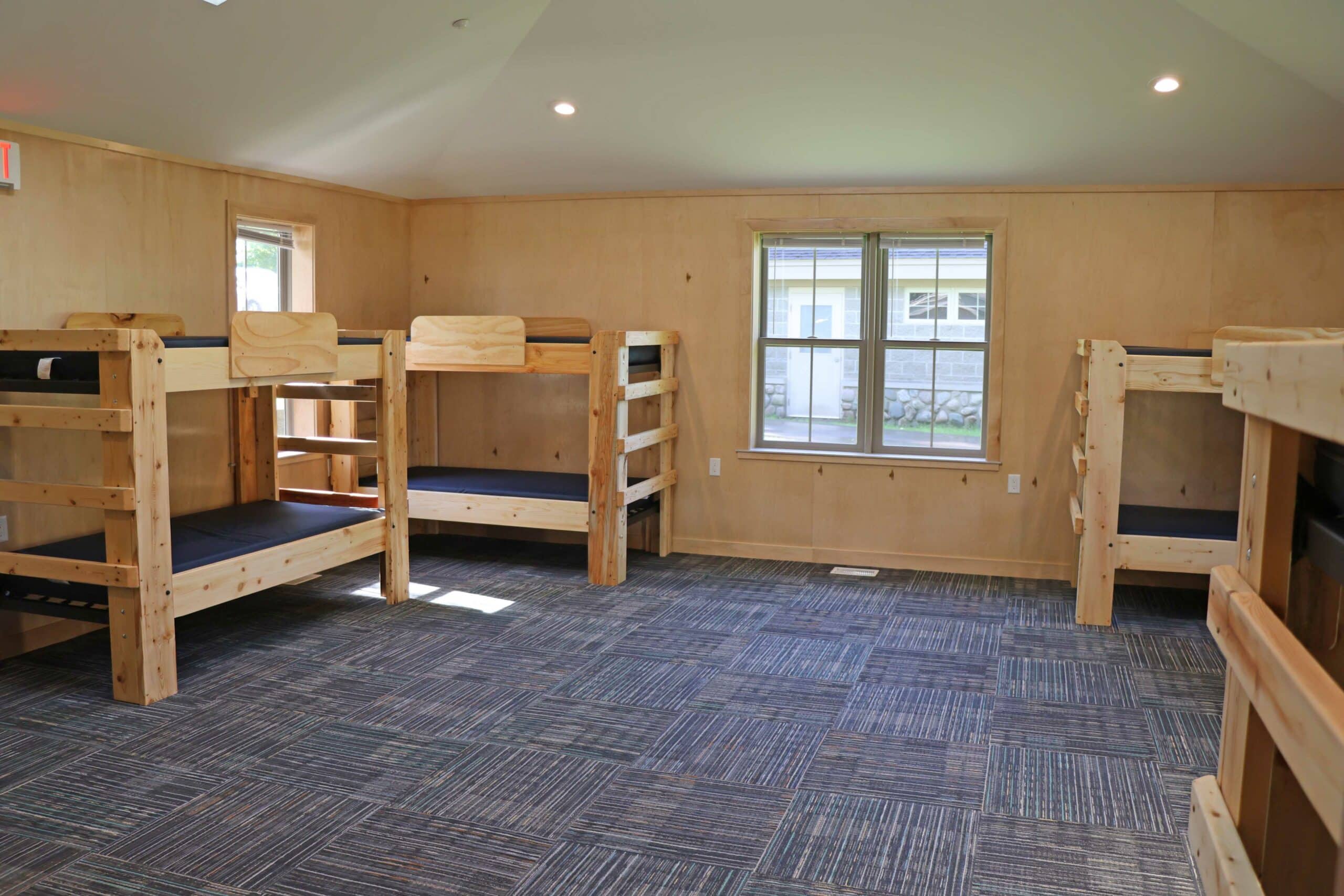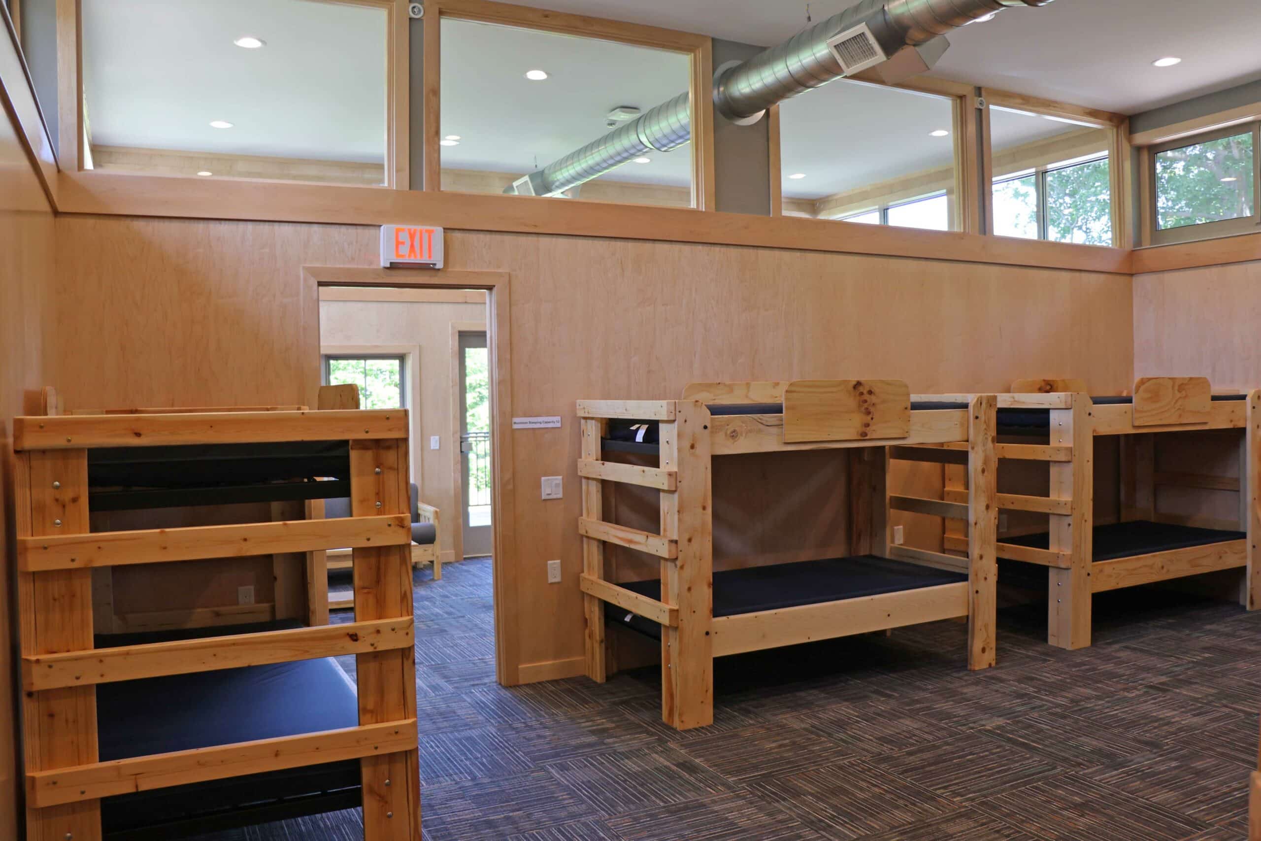 The Mission Point cabin features a second story deck, spacious lobbies, and three sleeping areas of 12 each with their own restroom/shower area.
